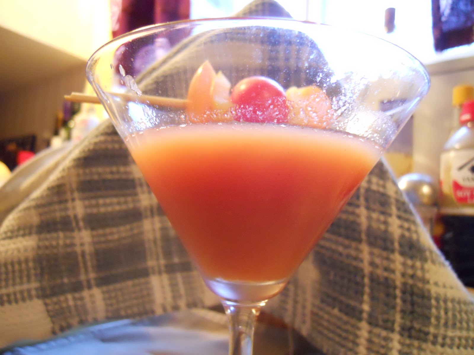 raw peppers and tomatoes for the garnish. Pour the Gazpacho into a martini